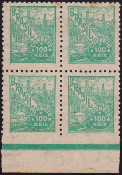• Brasil - Selo Netinha no valor de 100 réis em quadra sem carimbo com goma e variedade de falta de denteação na margem inferior!