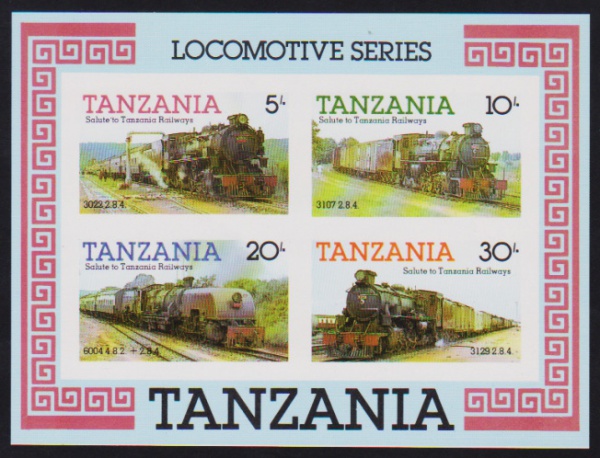 • Tanzânia - Ferrovias, bloco filatélico SEM DENTEAÇÃO, sem carimbo e com goma!