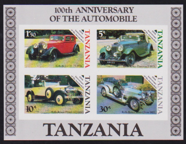 • Tanzânia - Automóveis, bloco filatélico SEM DENTEAÇÃO, sem carimbo e com goma!