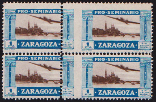 • Zaragoza - Selo aéreo em quadra sem carimbo com variedade de denteação em 2 selos!