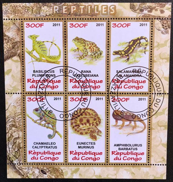 • Congo 2011 - Bloco filatélico alusivo ao tema répteis!