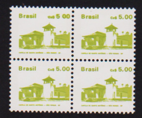 • Brasil 1989 - Convento de Santo Antônio, quadra sem carimbo com um selo com a variedade 5,00 sem a vírgula!