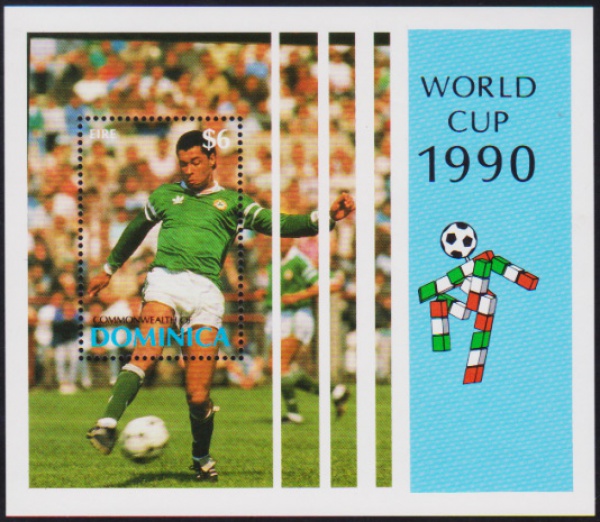 • Dominica 1990 - Futebol, bloco sem carimbo com goma!