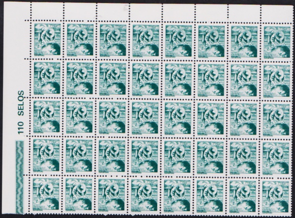 • Brasil 1979 - Selo Jangadeiro, regular em folha completa de 110 selos sem carimbo com goma. Selo com moldura fosforescente. Catálogo RHM 573!