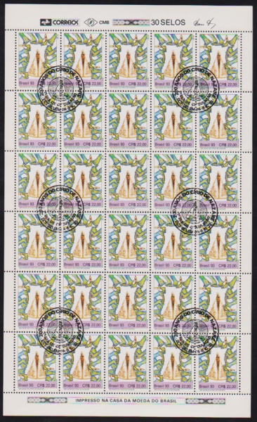 • Brasil 1993 - Círio de Nazaré, selo em folha completa de 30 selos com carimbos comemorativos!
