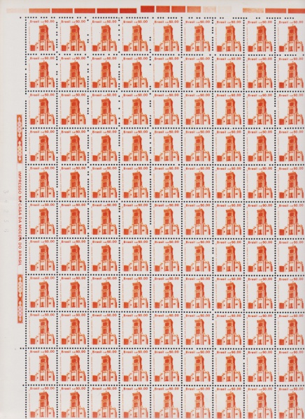 • Brasil 1988 - Igreja do Bom Jesus de Matosinhos, selo regular em folha completa de 110 selos sem carimbo com goma. Papel couche. Catálogo RHM 652. Valor de catálogo em R$ 220,00!