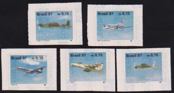 • Brasil 1997 - Aviões, série completa de selos regulares sem carimbo, autocolante!