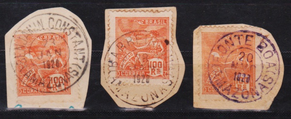 • Brasil - (BENJAMIN CONSTANT, BARREIRINHAS e FONTE BOA). Seleção de 3 selos clássicos com raros carimbos do Estado do AMAZONAS!