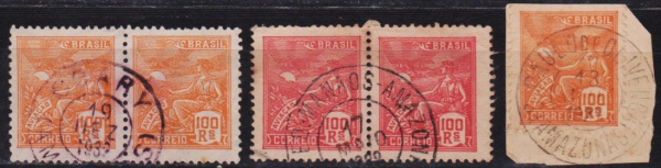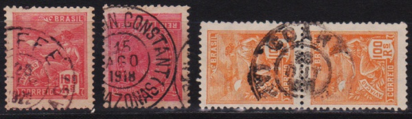 • Brasil - (TEFFÉ, BENJAMIN CONSTANT e COARY). Seleção de 3 selos clássicos com raros carimbos do Estado do AMAZONAS!