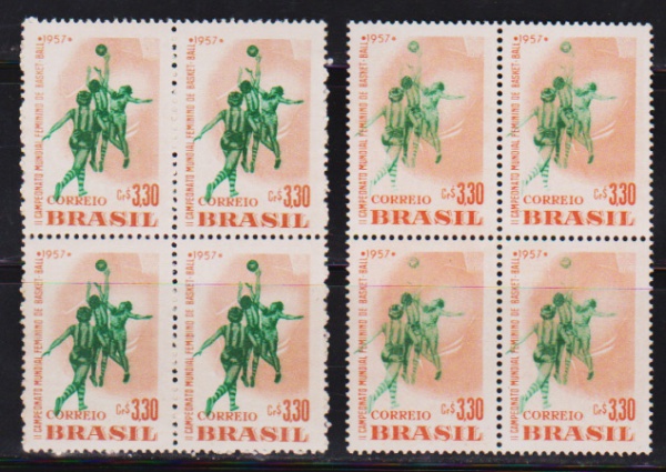 • Brasil 1957 - Campeonato de Basquete, 2 quadras sem carimbo nas cores verde escuro e verde claro!
