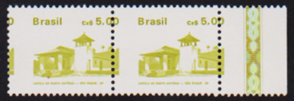 • Brasil - Capela de Santo Antônio, selo em par horizontal sem carimbo com goma e com variedade de deslocamento de denteação!
