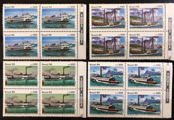 • Brasil 1985 - Embarcações, série completa em quadras sem carimbo com goma!