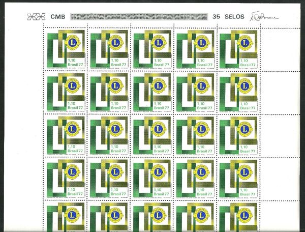 • Brasil 1977 - Lions em folha completa de 35 selos sem carimbo e com goma!