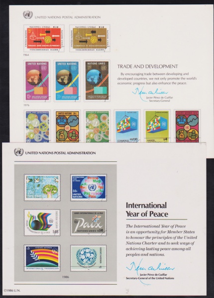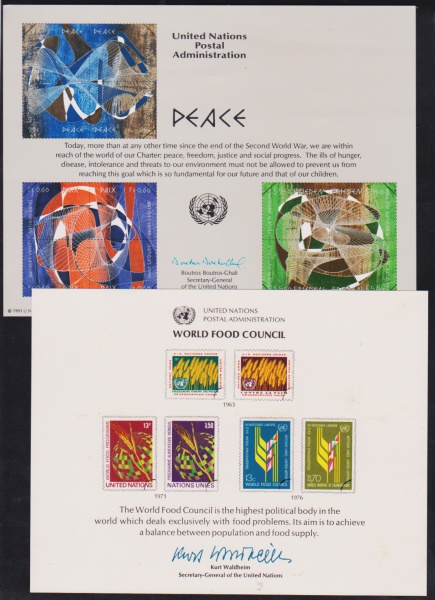 • Nações Unidas - Seleção de 2 folhinhas com selos impressos!