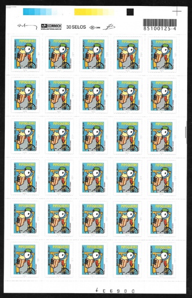 • Brasil 2006 - Folha completa do selo do pipoqueiro de 1 centavo. Raro!