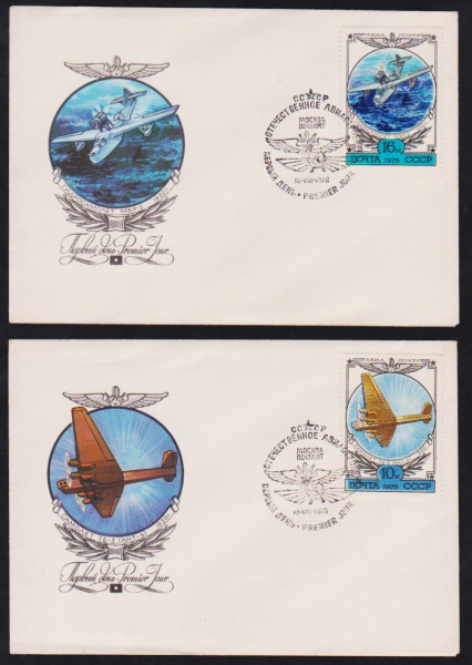 • URSS 1978 - Aviação, série de 2 envelopes FDC's com selos e carimbos comemorativos!