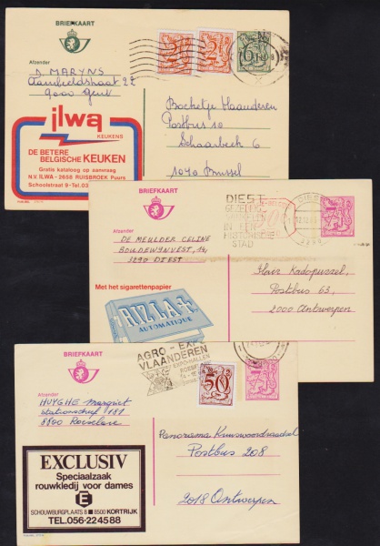 • Bélgica - Seleção de 3 inteiros postais chamados PUBLIBEL, circulados e com publicidades!