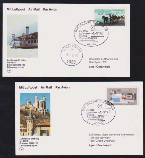 • Alemanha - 2 cartões selados e voados pela LUFTHANSA com carimbos do voo!