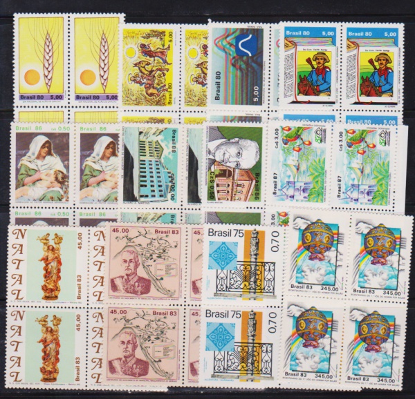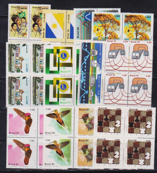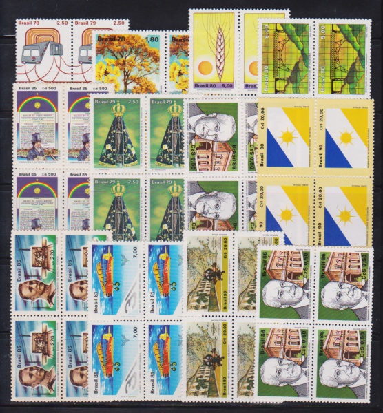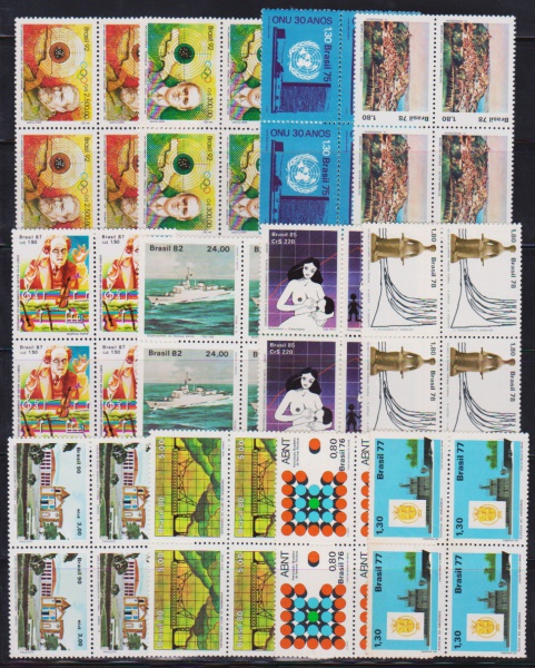 • Brasil - Seleção de 12 quadras de selos comemorativos sem carimbo com goma e todas diferentes e perfeitas!